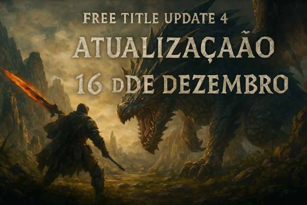 A atualização acrescenta Gogmazios, o dragão-alabarda gigante. Data: 16 de dezembro. Plataformas: PS5 (e demais conforme franquia). Atualização global.