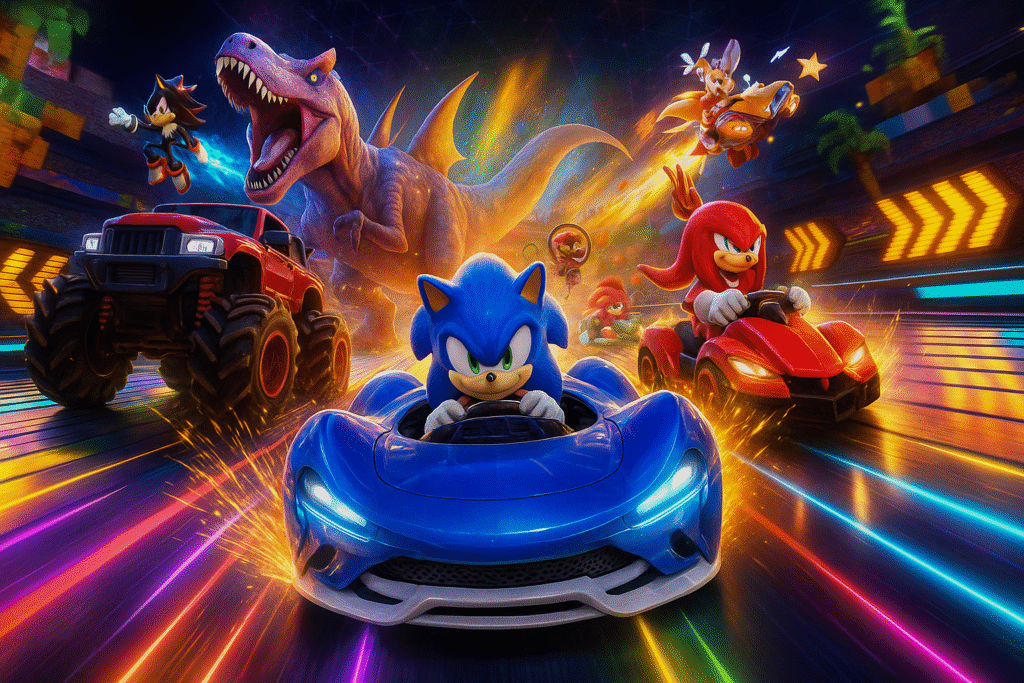 Sonic Racing: CrossWorlds — SpongeBob Pack (DLC) — pacote 19/11 (PT) / 20/11 (JST) e personagens convidados gratuitos.